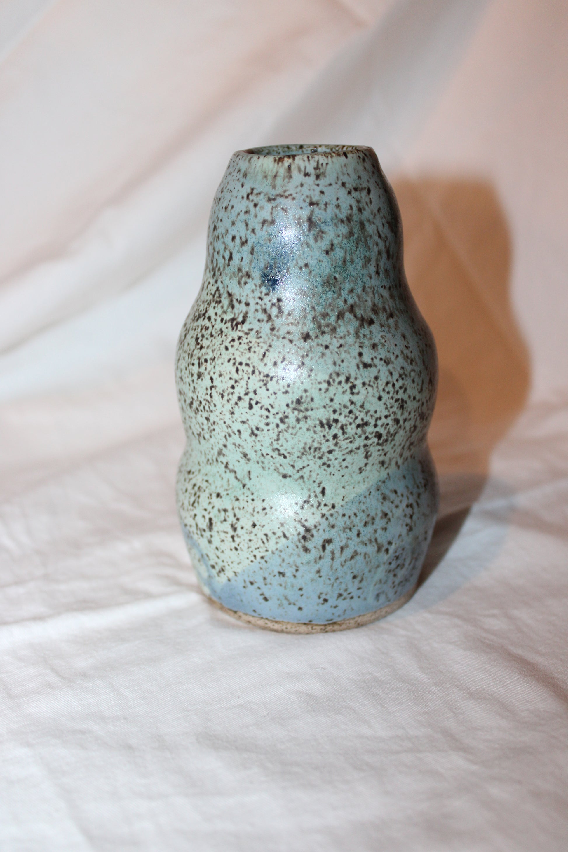 Bud vase perfect for extending the life of a bouquet or for shorter stems. spearmint and denim blue house glazes. H. 5" W. 2.5"
