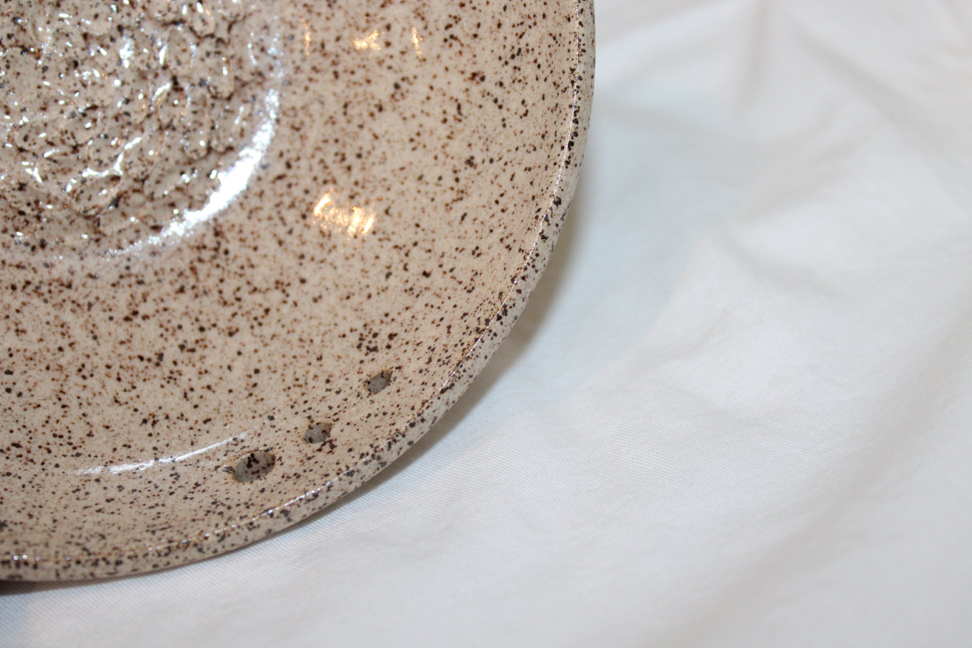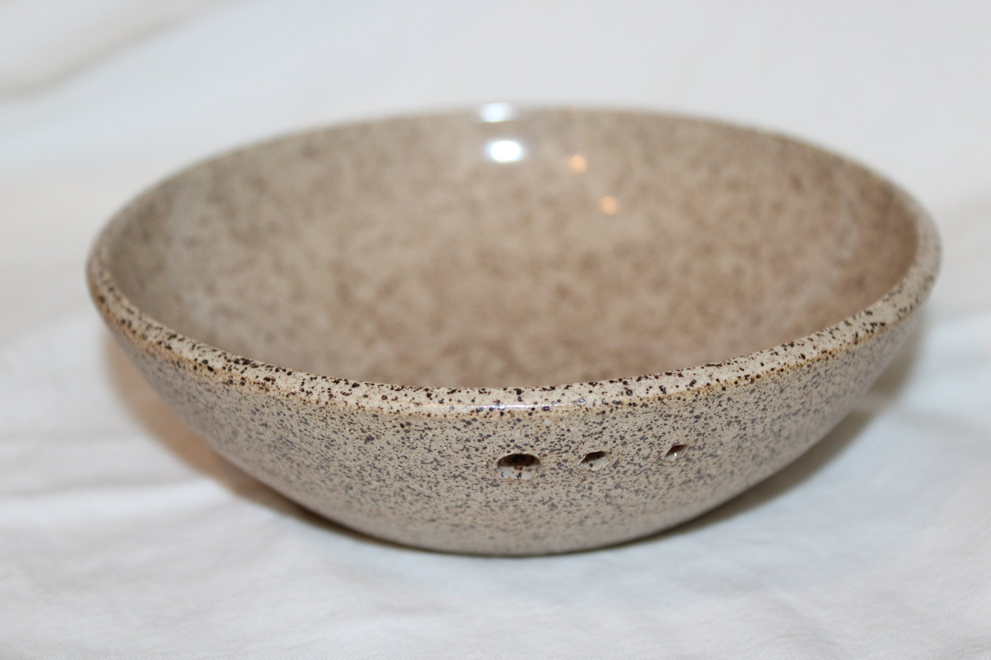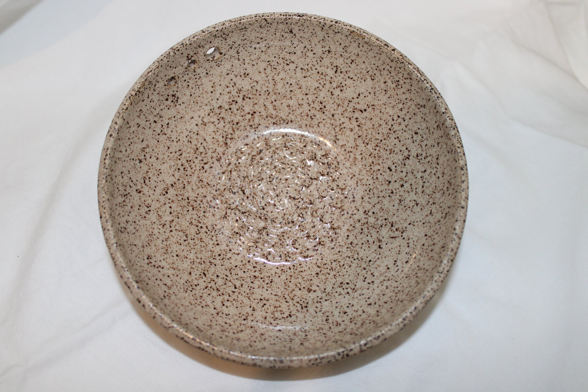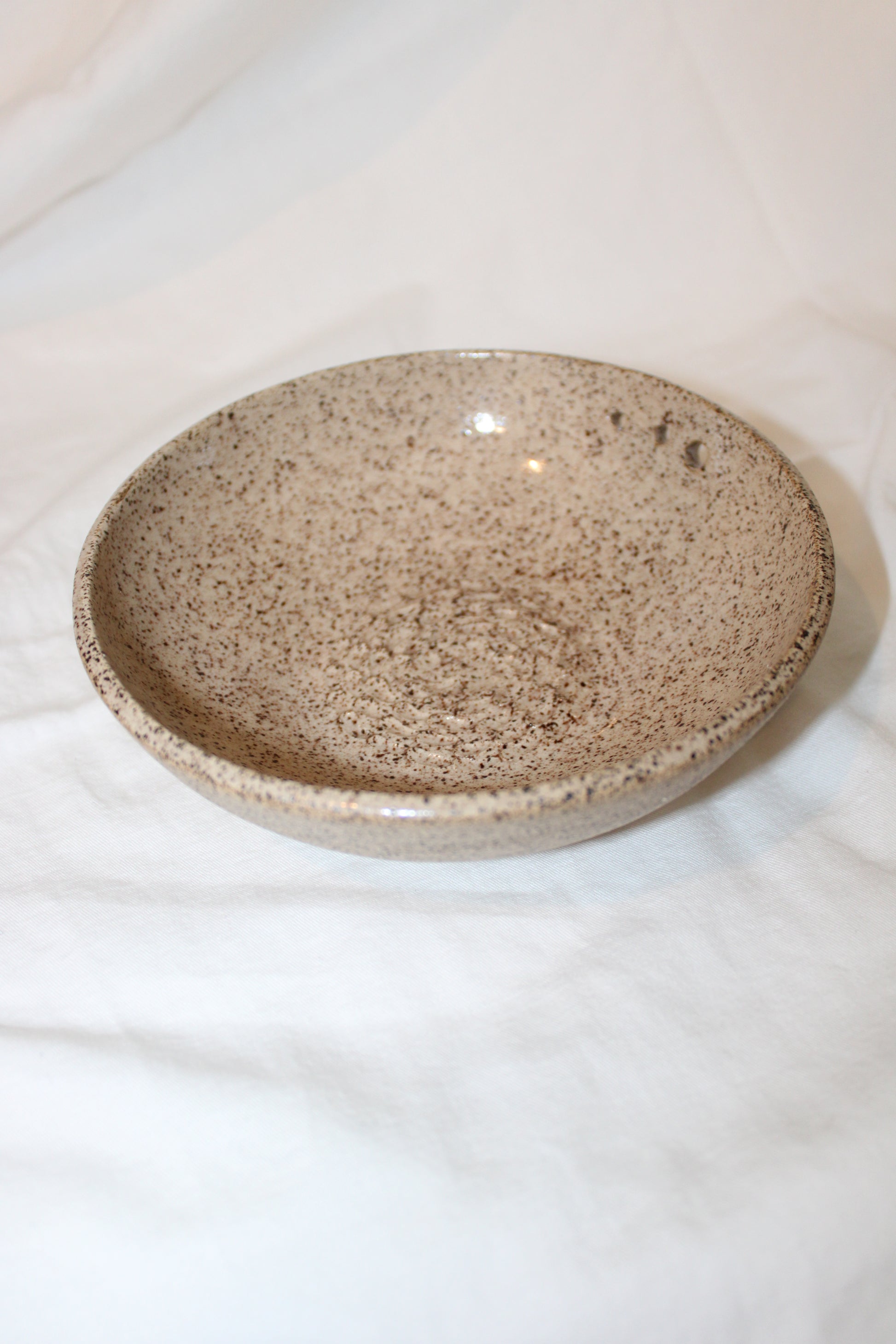 Strip herbs of the stem and grate fresh garlic cloves easily with this one piece! Clear glaze on inside of piece, with bare clay outside. H. 1.5" W. 6"